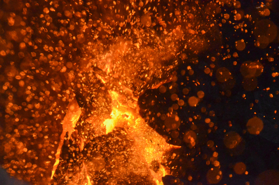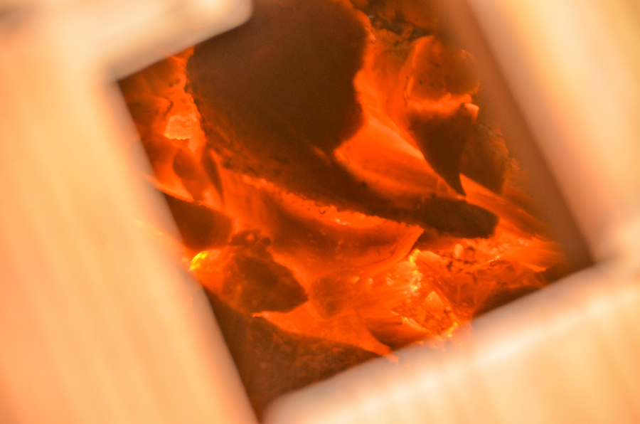 My first kiln used coal as fuel, and a hair dryer to force air in and reach the required temperatures. At this point, my goal was to bisque fire a piece without it cracking. Temperatures were monitored using one or more thermocouples. I didn't take any notes on what worked or didn't, rather I built a (very flawed) intuition.