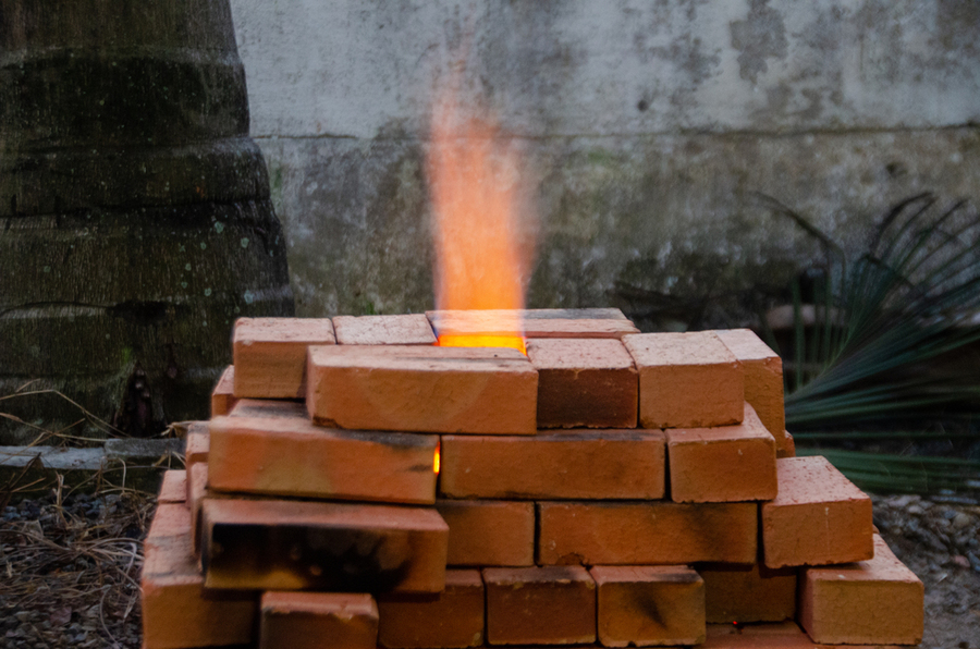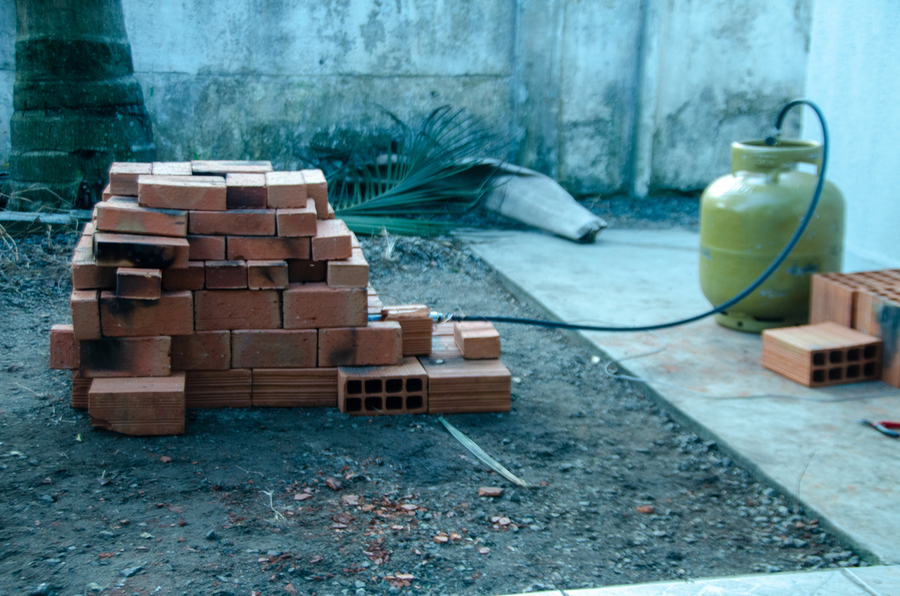 The second iteration used bottled gas from my kitchen (which I think is Liquefied petroleum gas). This change and ease of control allowed me to somewhat consistently bisque fire pieces, although often at least one piece would crack.