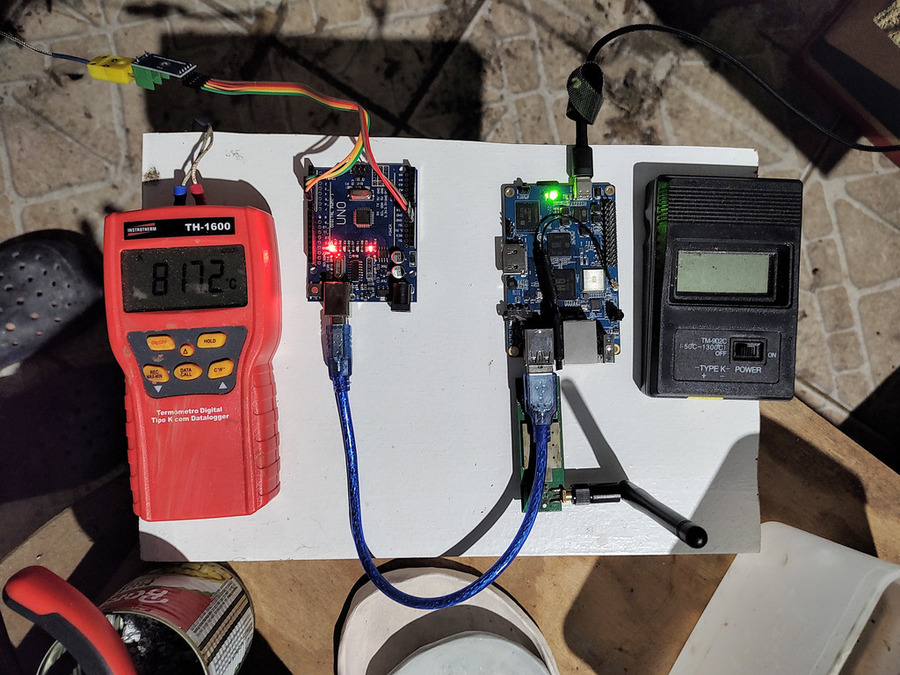 Powered by some cheap chinese thermocouples, cheap Arduino clones and a cheap raspberry pi knockoff, it ran some python code to track and push the temperatures to an InfluxDB instance I had laying around from another project. From InfluxDB, I could see the data using Grafana. This allowed me to see exactly the temperature curves that I used to fire. Using Grafana Annotations feature, I could easily take notes of events that happened and what I was doing. Things such as changing the gas flow rate, or changing the flue opening size. This led me to significant improvements on the quality of my pieces, while also allowing to do firing more often, including during work days. By being able to monitor the temperatures from my cellphone, set alerts using Grafana and take some peeks using an IP Camera. Some carefully placed thermocouples on the outside at critical locations, such as on the gas hoses and on the outside of the kiln gave me enough confidence to be able to work without checking it every 5 minutes. However, my monkey brain didn't really like the idea of having something that can explode unattended. Furthermore, the kiln still had some issues blocking my progress.